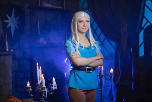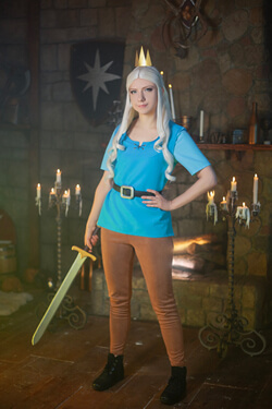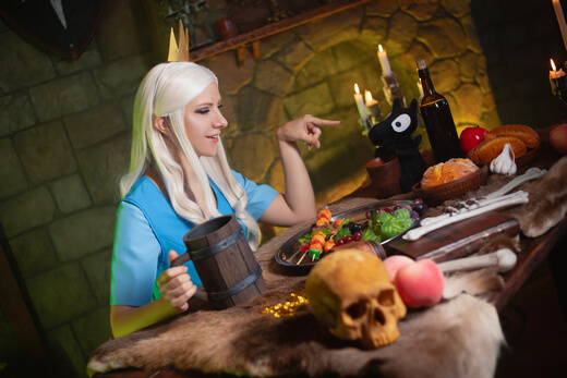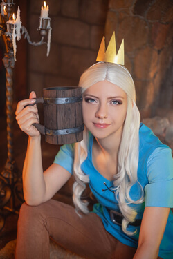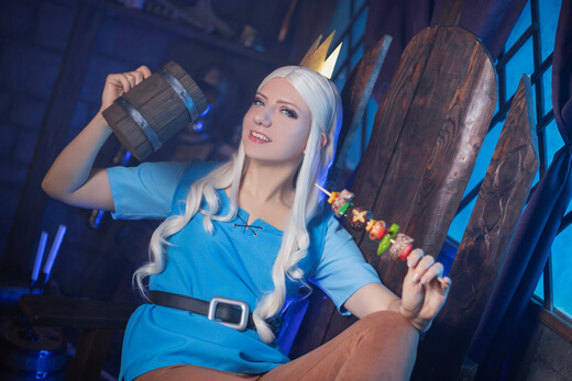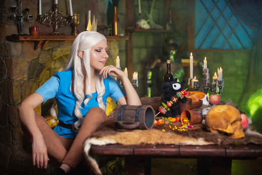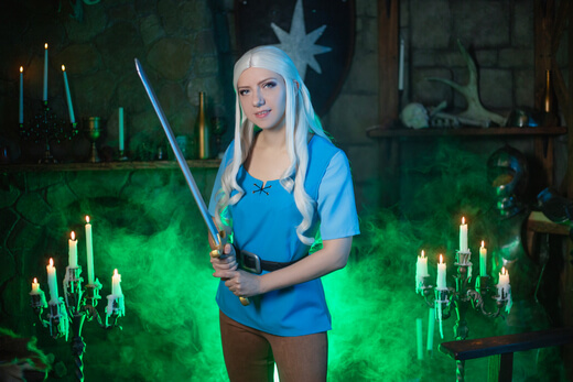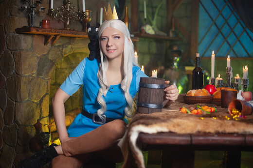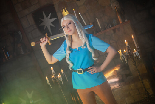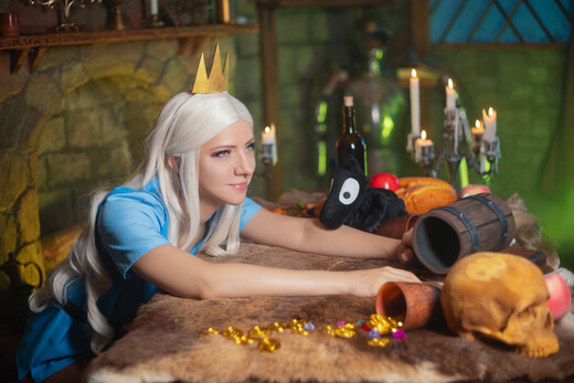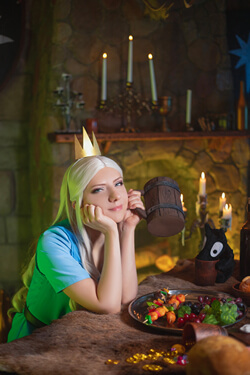 My cosplay of Princess Tiabeanie from Disenchantment. I designed it as a comfy outfit for walking around at conventions. The costume, accessories, and props were all made by me, except for Luci!